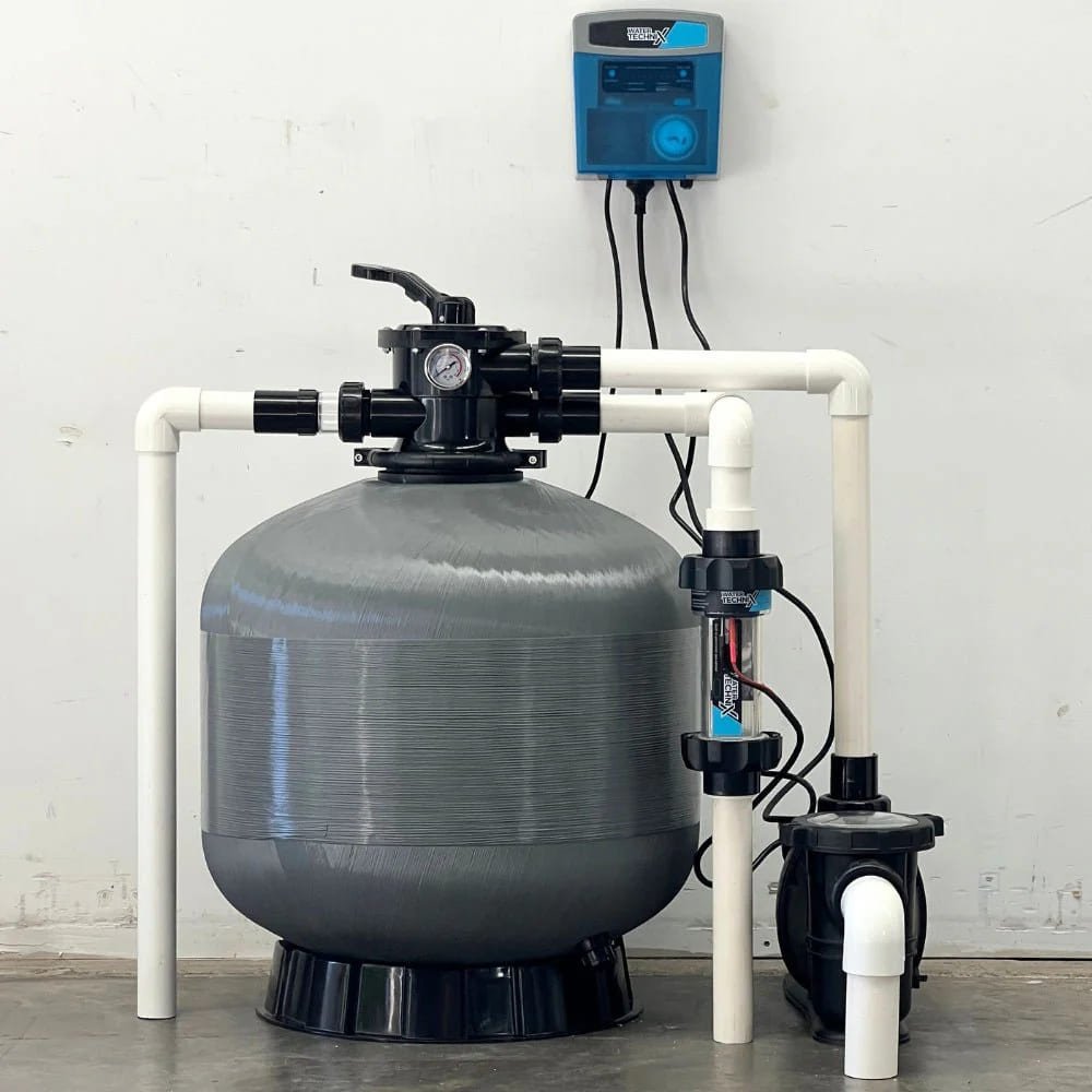 A commercial‑grade sand filter system designed to keep pool water crystal clear by removing dirt, debris, and contaminants.